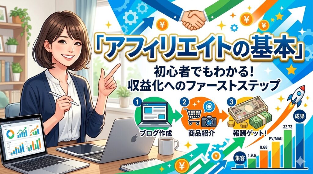 アフィリエイトは「商品やサービスを紹介して、成果(購入・登録など)が出たら報酬がもらえる仕組み」です。シンプルに言うと“紹介料ビジネス”。