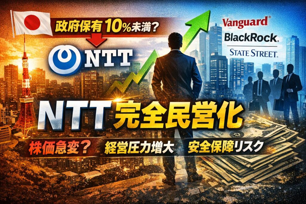 • 一部の株は機関投資家や信託口、海外投資家が保有しているものの、株式の大半は日本側(NTT とその他日本人)による所有です。 (ウィキペディア)