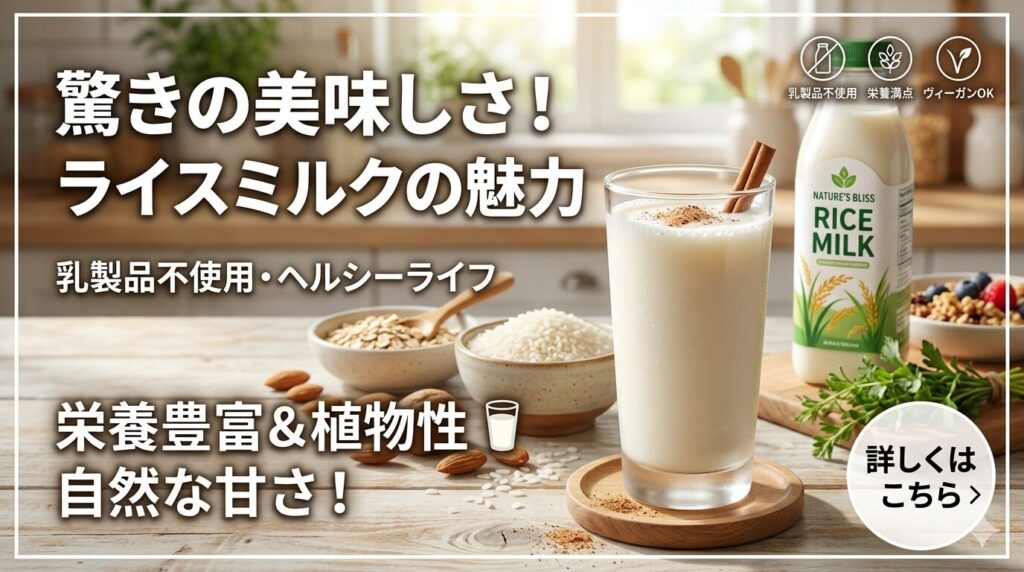 ライスミルクは米を原料にした植物性ミルクで、水に浸した米をすりつぶして濾した飲料です。乳製品ではないため、乳糖不耐症やヴィーガンの人でも飲める代替ミルクとして使われます。