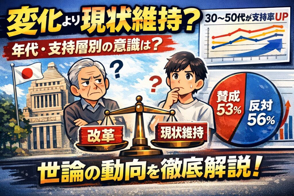 - ただし、過去数年の世論調査では大きな変化がなく、安定志向・現状維持を支持する声が一定程度続いているという見方はできます。