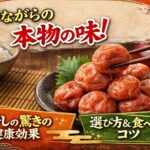 2026年1月31日 / 最終更新日時 : 2026年1月31日 info 梅干しの特徴と効用 Episode-003:50代の体に一番合う白干し梅[梅干しの特徴と効用] 50代の体に合う白干し梅 — 健康の視点で選ぶポイント 結論:完熟の南高梅・塩分18〜20%・天日干し(本干し)・無添加が、50代の体にいちばん合いやすい白干し梅です。 なぜ白干し梅が50代に合うのか 50代になると: […]