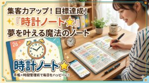 時計ノート☆とは、時計にメモするような感覚で記入し、一か月の時間を見渡せる「アナログ時計型バーチカル」という新しい形のスケジュール管理ツールです。時間を『分量』として捉えられるので、毎日のスケジュールやタスクを直感的に可視化でき、時間管理が楽しくなる設計が特徴です。