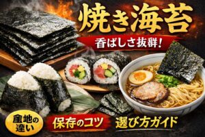 • 焼き海苔:香ばしさと歯切れが段違い(寿司向き)