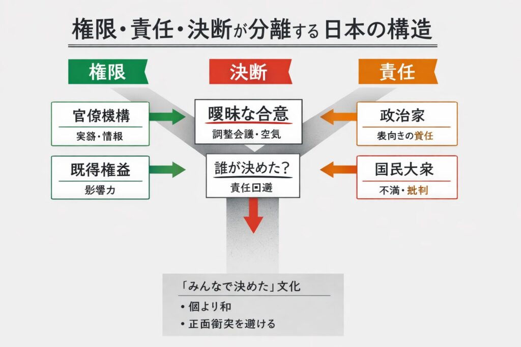 2026年2月3日 / 最終更新日時 : 2026年2月3日 info 神社と政治について Episode-004:図解1枚:権限・責任・決断が分離する日本構造[神社と政治について] コメントを残す コメントをキャンセルメールアドレスが公開されることはありません。 ※ が付いている欄は必須項目ですコメント ※ 名前 ※ メール ※ サイト 次回のコメントで使用するためブラウザーに自分の名前、メールアドレス、サイトを保存する。